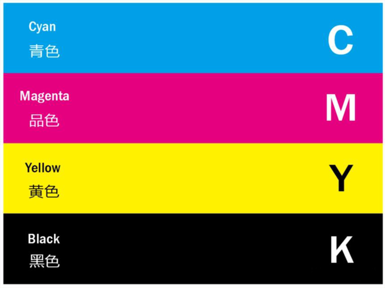 注:C青色,Cyan的简写;M红色Magenta的简写,M不是我们常说的红色,我们常说的红色是大红,印刷中的M指的是洋红;Y黄色,Yellow的简写;K黑色,英语为Black。